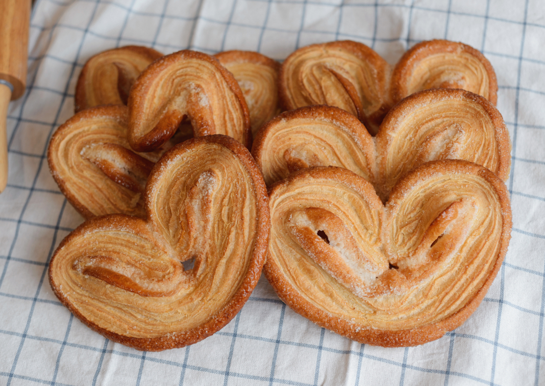 🥐✨ Crocante, ușor caramelizate și irezistibile! Fursecurile Palmier ❤️ sunt făcute din aluat foietaj fin, presărat cu zahăr și coapte până devin aurii și fragede. Perfecte lângă ☕ cafeaua de dimineață sau ca o gustare dulce 🍬 în timpul zilei!