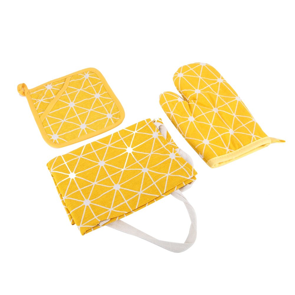 👩🍳 Set bucătărie galben cu model geometric alb – design vesel și protecție completă pentru gătit în siguranță!