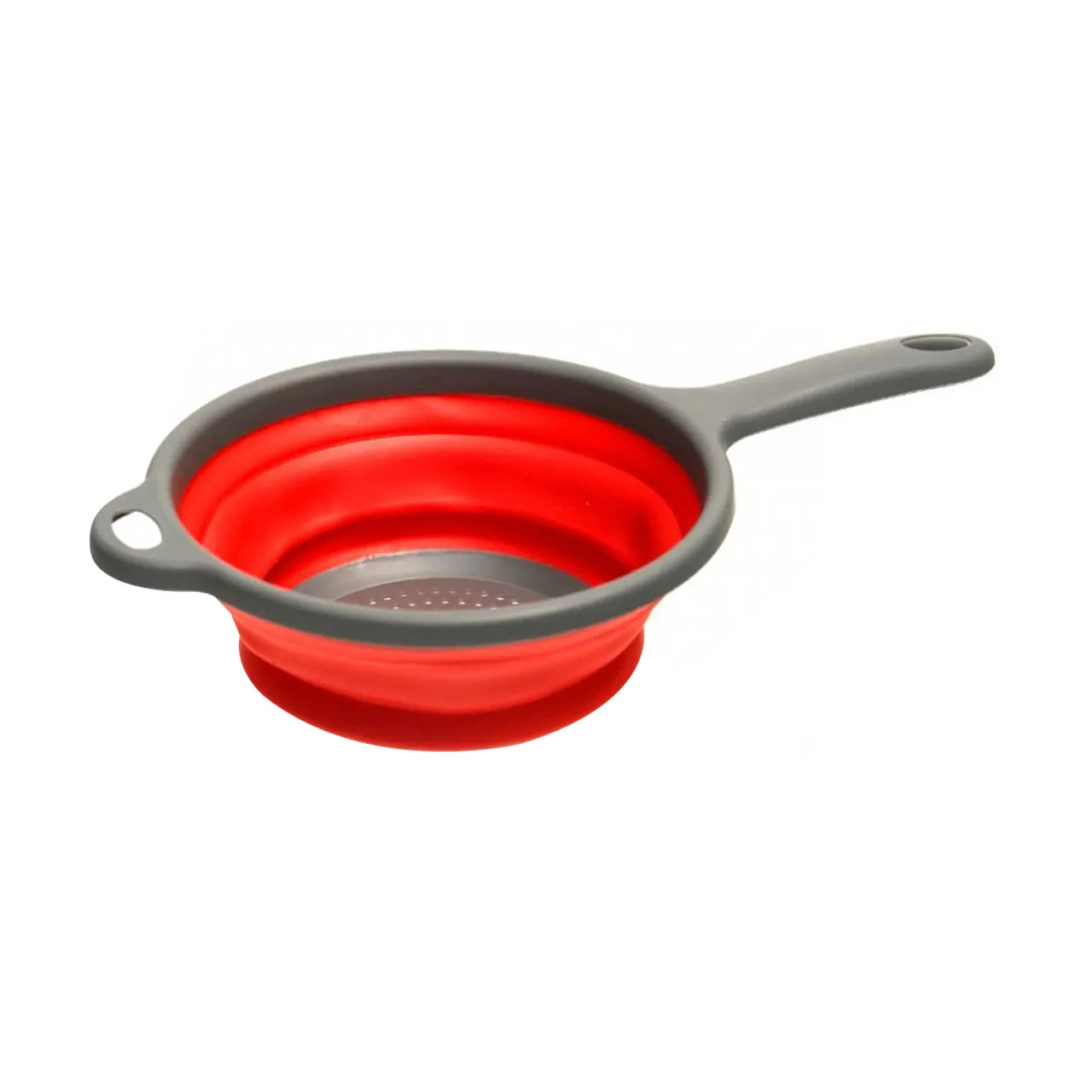 🥗 Strecurătoare pliabilă din silicon – roșu cu gri ❤️⚫️ – accesoriul ideal pentru bucătăria ta modernă și practică!