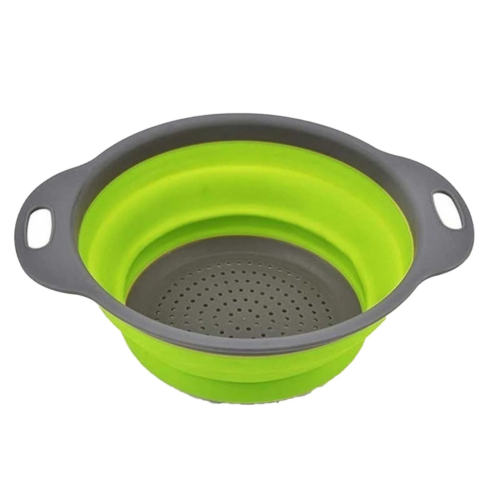 🥗 Strecurătoare pliabilă din silicon – verde cu gri 🌿⚫️ – accesoriu esențial pentru o bucătărie modernă și organizată!